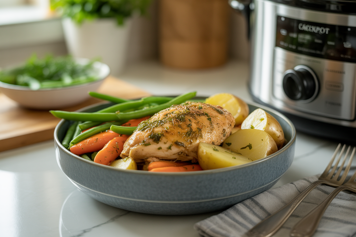 Add everything to the crockpot and cook until the chicken is tender and the vegetables are soft. Keep the seasoning simple so the meal still feels versatile.