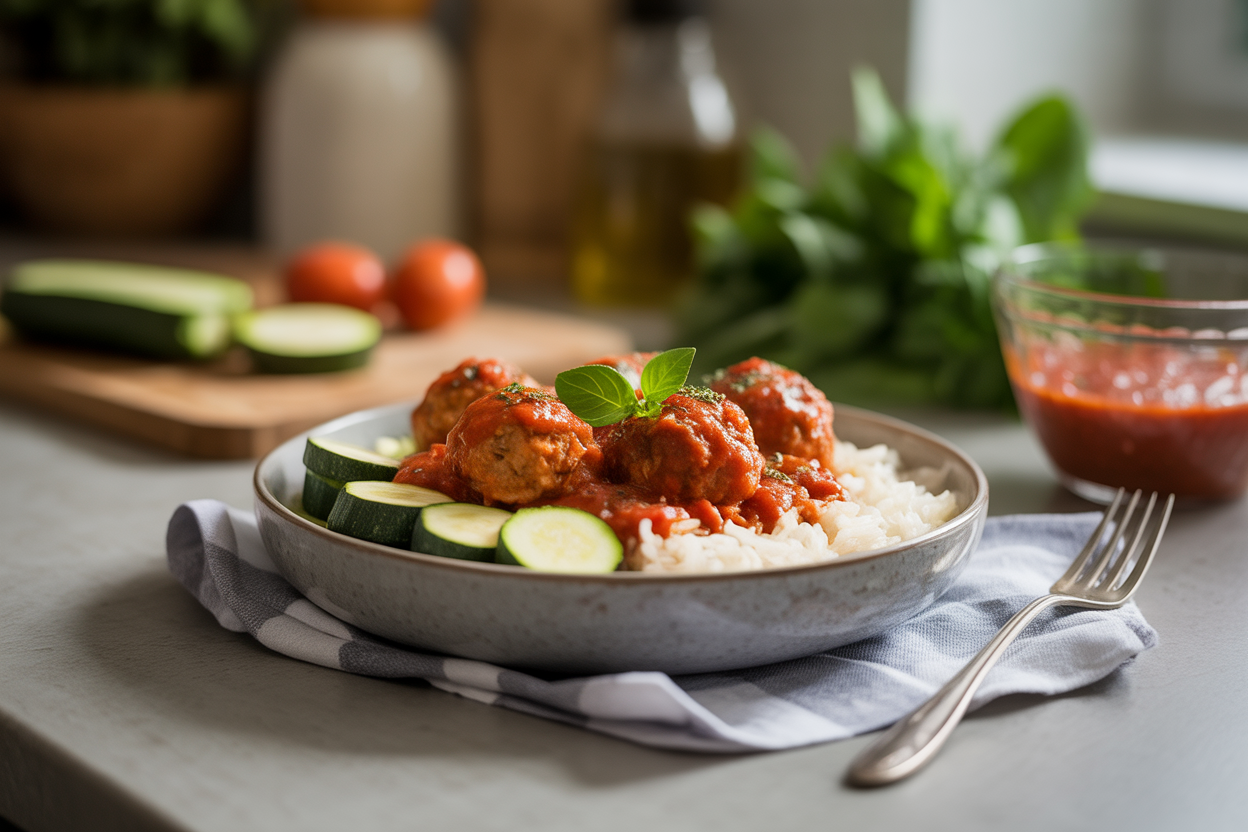 | Turkey Meatballs With Rice and Zucchini | 15 min | 15-18 min | 30-35g | Combines protein and easy-to-digest carbs for a more satisfying dinner |
