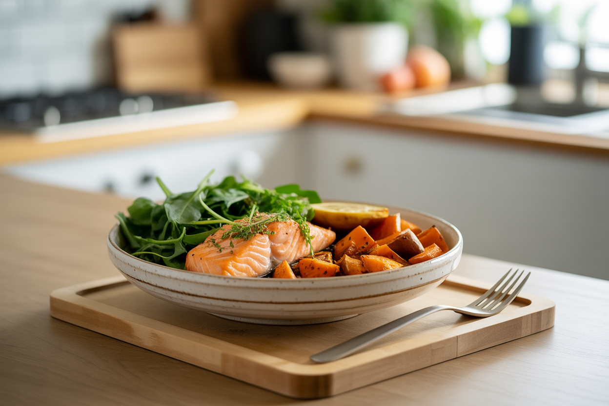 | Salmon, Sweet Potato, and Greens Bowl | 10 min | 20-25 min | 30-35g | Supports recovery, fullness, and a calmer evening wind-down |