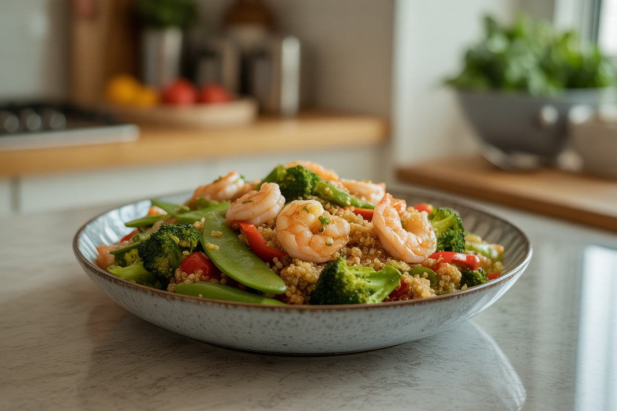 | Garlic Shrimp Quinoa Stir-Fry | 10 min | 10 min | 30-35g | Delivers fast protein, minerals, and steadier evening energy |