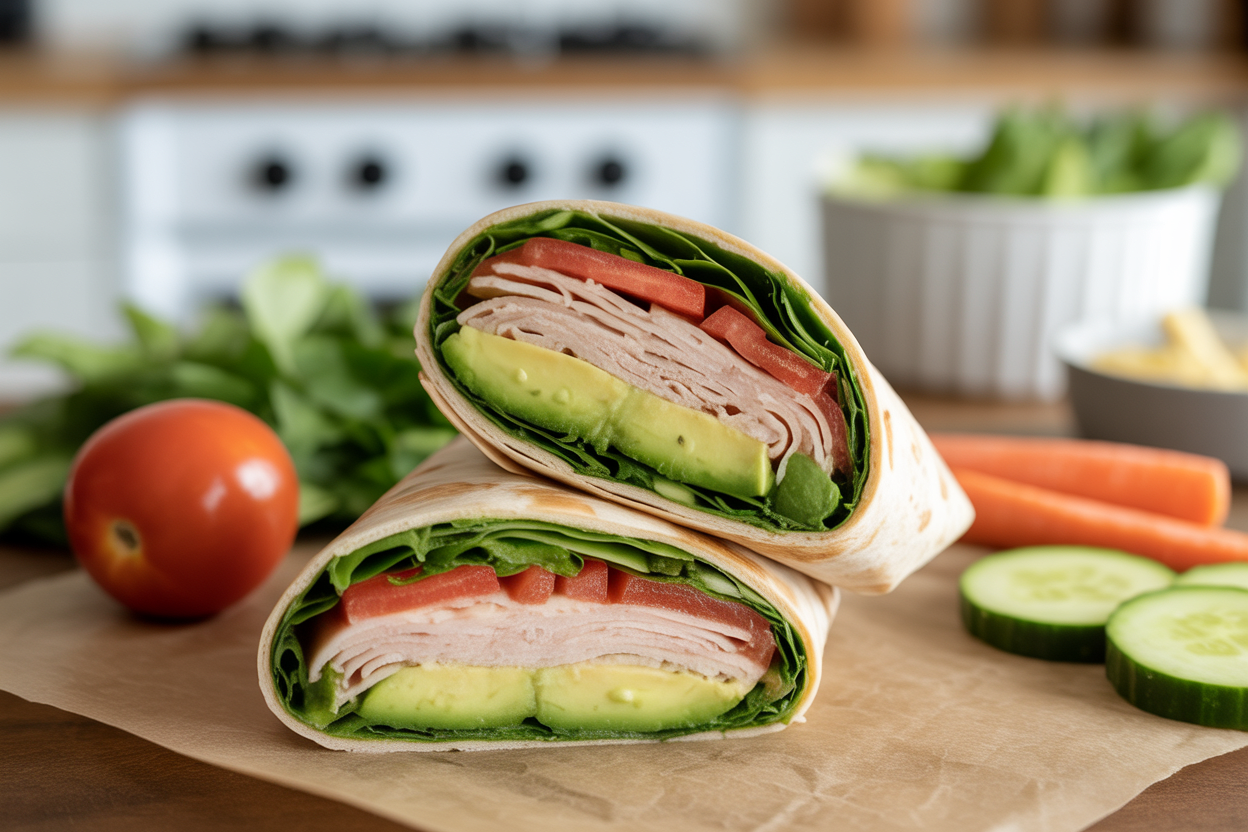 Why It Works: Turkey gives you a solid protein base without making lunch feel heavy. Avocado slows digestion a bit and helps with satiety, while the wrap and vegetables make the meal more balanced than a refined-carb lunch that leaves you crashing an hour later.