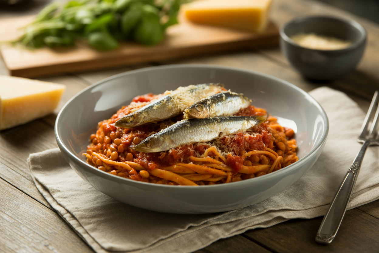 Why It Works: Lentil pasta gives you more protein and fiber than regular pasta, which changes the whole energy outcome of the meal. Adding sardines or salmon pushes the protein even higher and gives you omega-3 fats that support recovery and inflammation balance. So instead of getting that heavy, sleepy post-pasta crash, you get a more balanced meal that actually sticks with you.