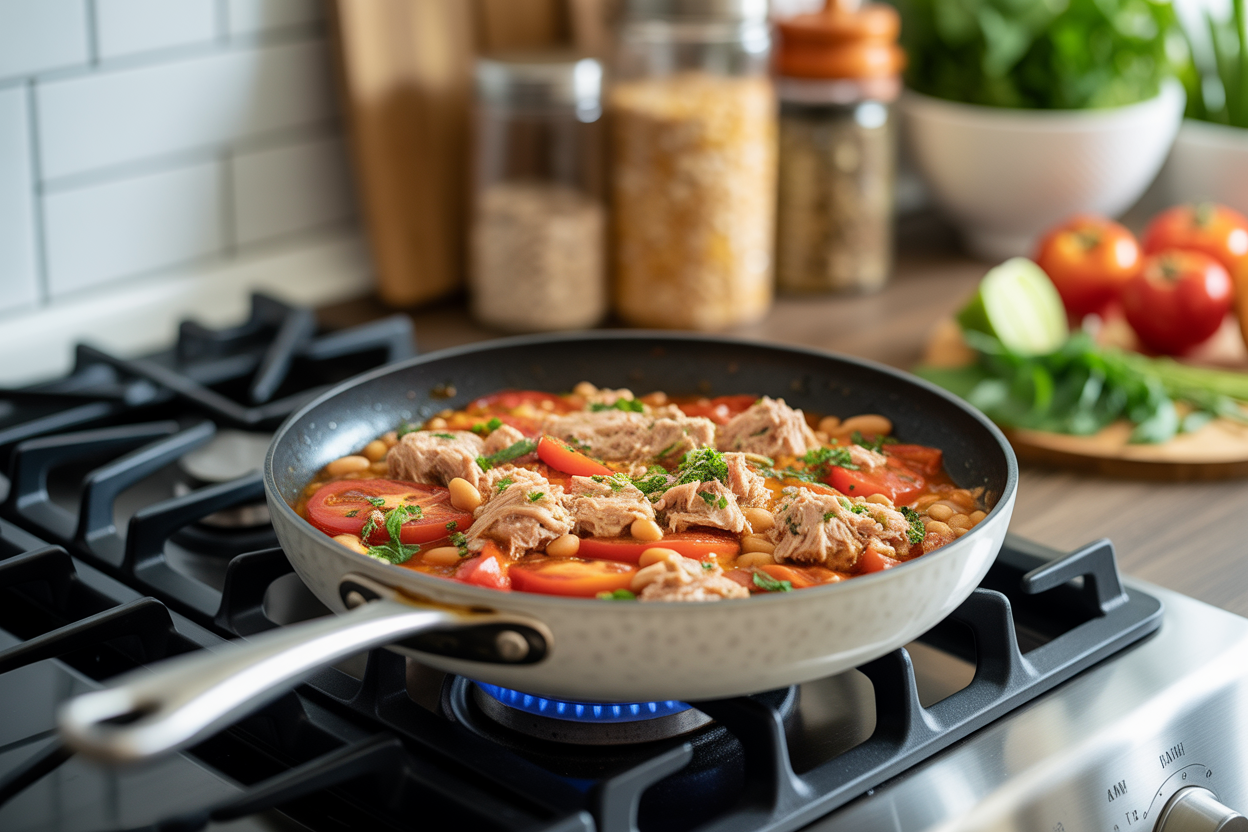 | Tuna White Bean Skillet | 5 min | 8-10 min | 35-40g | Combines protein and fiber for steadier energy and better fullness |