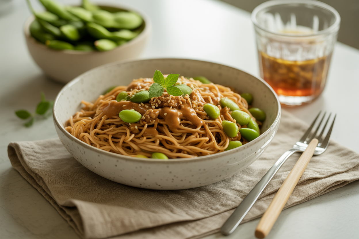 | Peanut Butter Soy Edamame Noodles | 5 min | 8-10 min | 25-35g | Fast, comforting, and built to reduce late-night snacking |