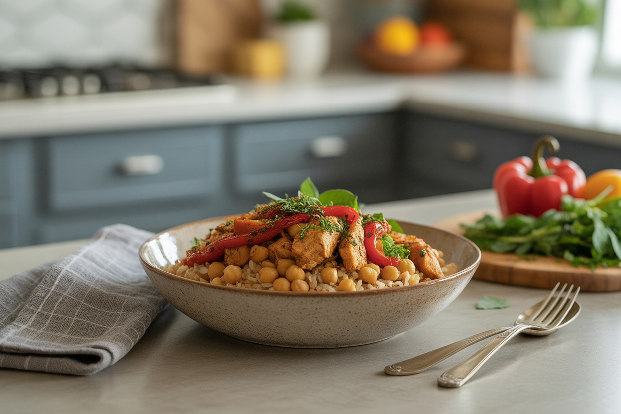 | Chickpea Chicken Bowl With Rice | 5 min | 5 min | 30-35g | Great for protein meal prep and more stable appetite control |