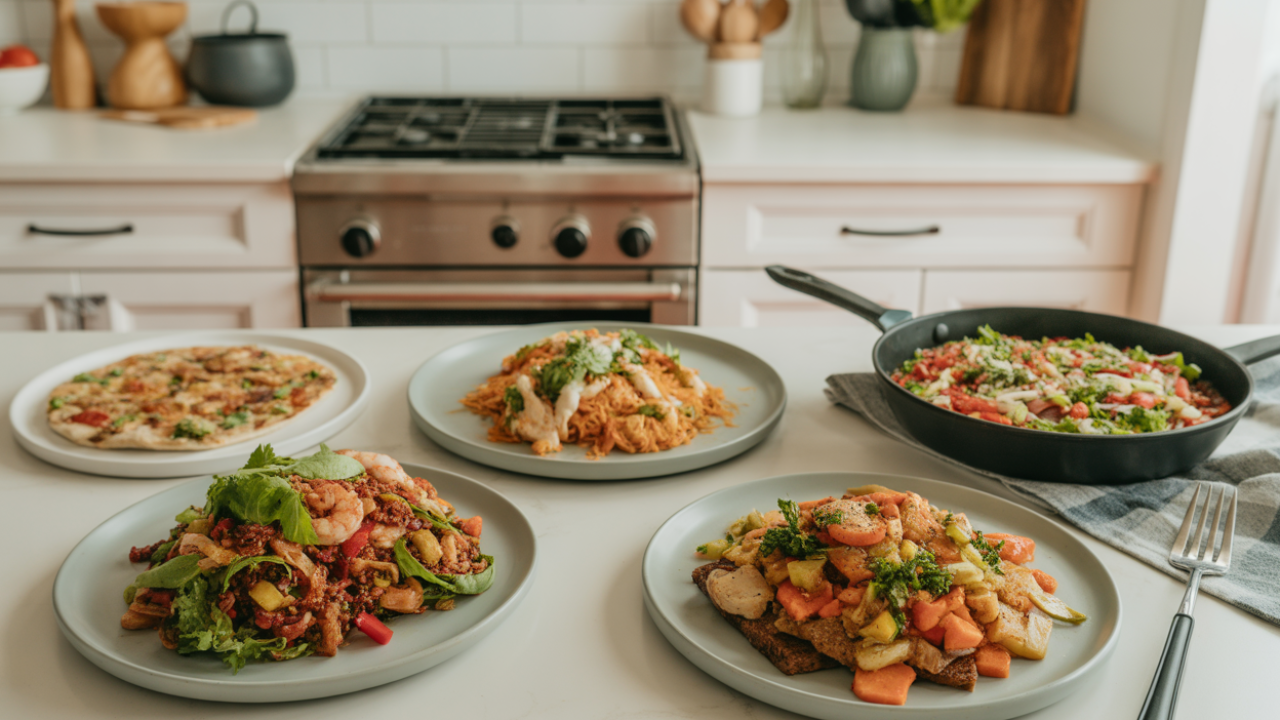 | Greek Yogurt Chicken Flatbread Pizza | 5 min | 10-12 min | 30-35g | Upgrades comfort food into a high-protein dinner that actually satisfies |