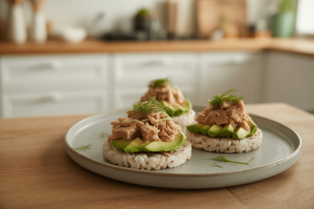 Tuna and Avocado Rice Cakes |