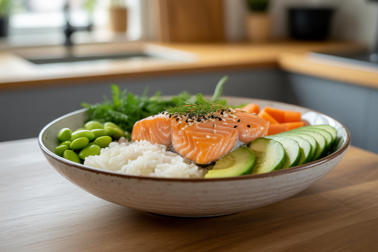 | Salmon Bowls With Rice, Cucumber, and Avocado | 10 min | 12-15 min | 30-35g | Supports recovery, satiety, and more balanced evening energy |