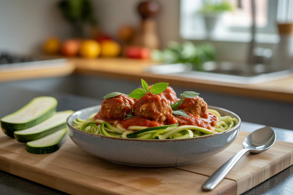 This is one of those meals that fits the lifestyle, not a diet approach. You’re not trying to make dinner “perfect.” You’re just building a more balanced version of something you already like. It also works well as part of protein meal prep because the meatballs reheat easily and can carry you through a few nights.
