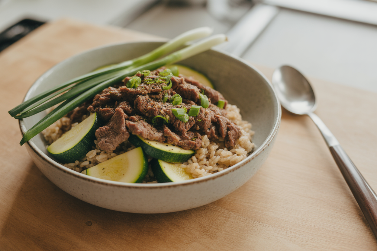 | Lean Beef and Zucchini Rice Bowl | 10 min | 12 min | 36g | Satisfying, protein-forward dinner with better staying power |