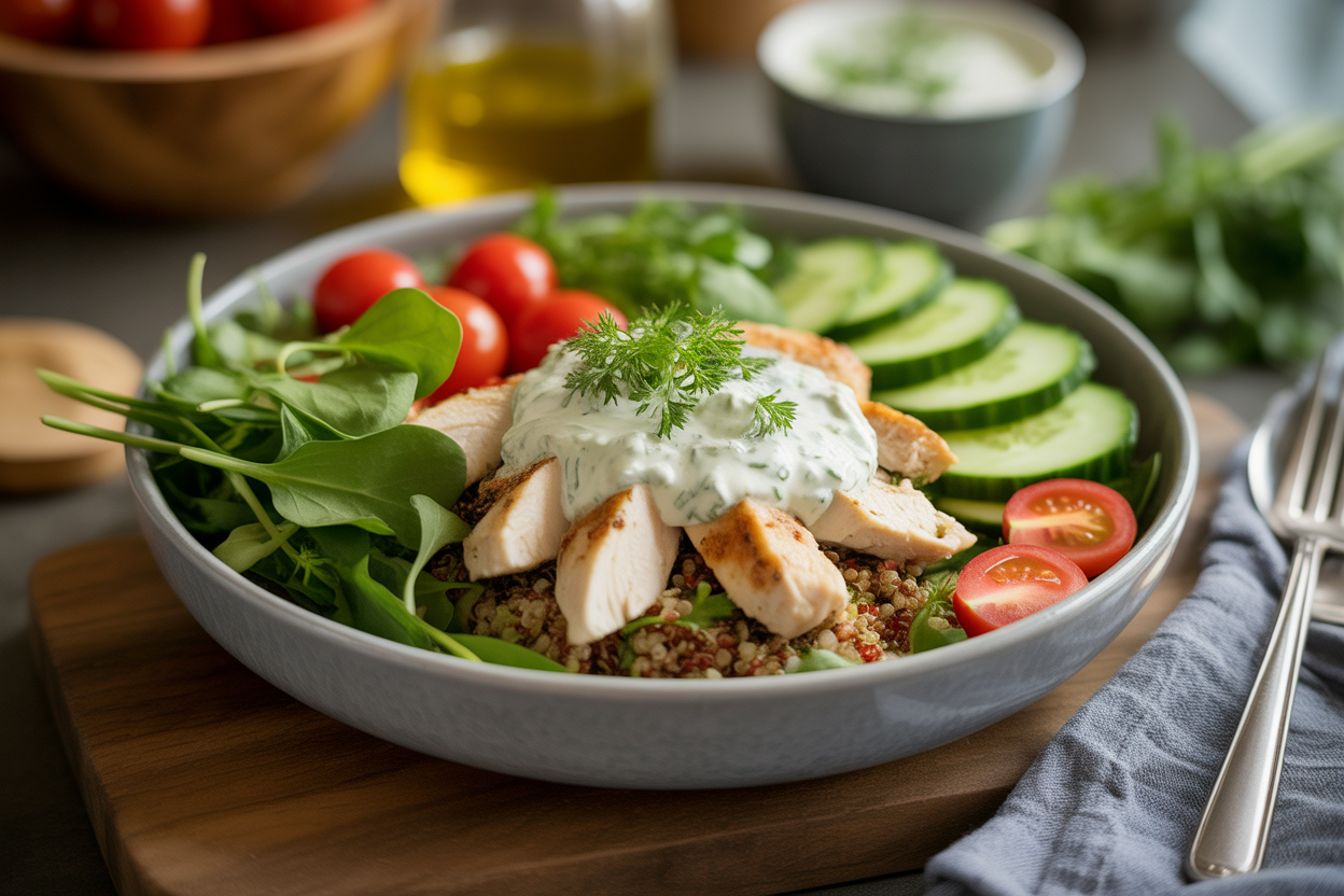 | Greek Yogurt Chicken Bowls | 12 min | 10 min | 43g | Balanced structure that keeps you full without feeling weighed down |