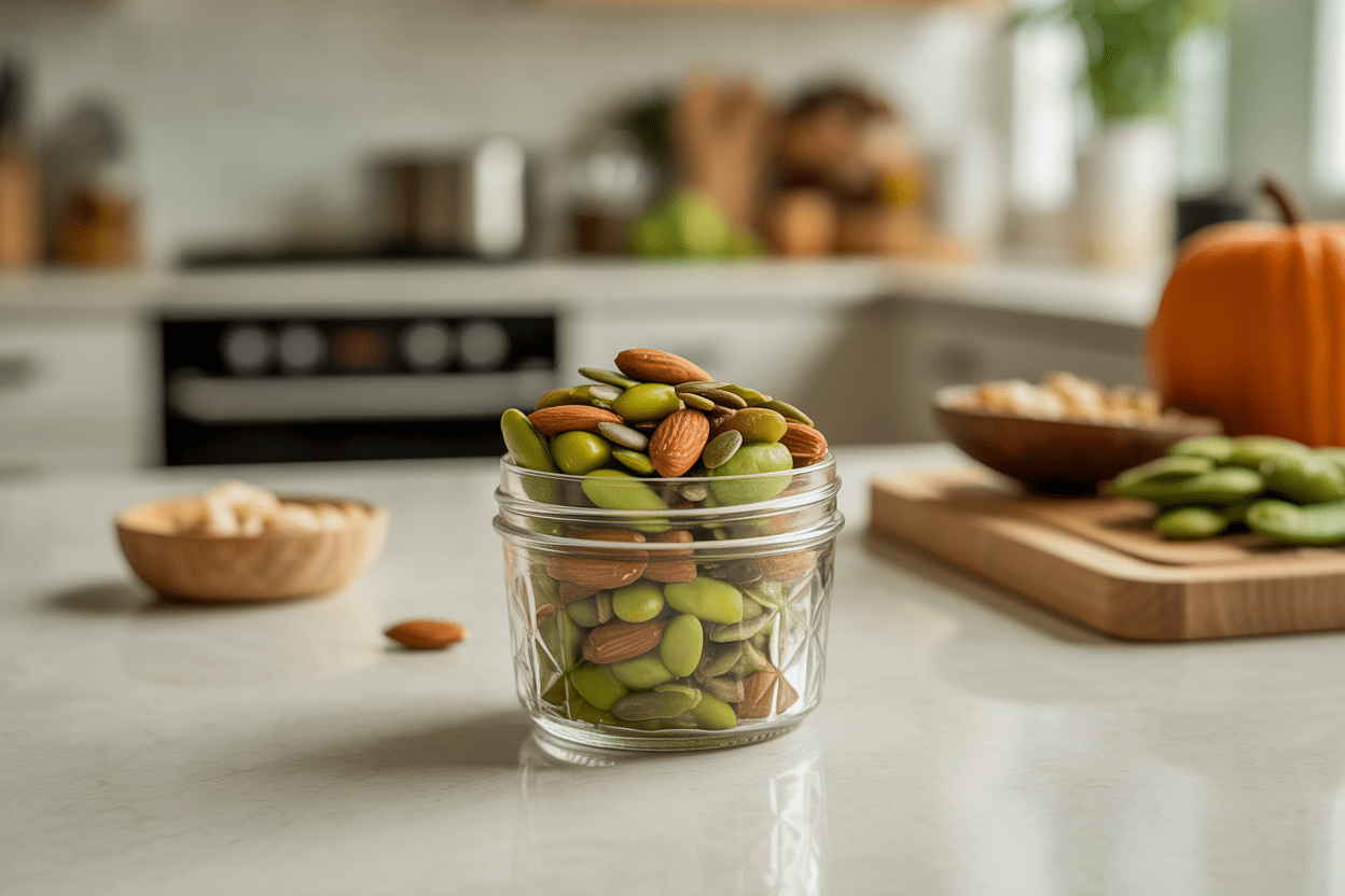 Why It Works: Edamame, nuts, and seeds give you protein plus a little fiber and fat, which improves staying power. Snacks built this way are useful for healthy dinner ideas too, because they help you avoid getting so hungry that dinner turns into an overeating situation.