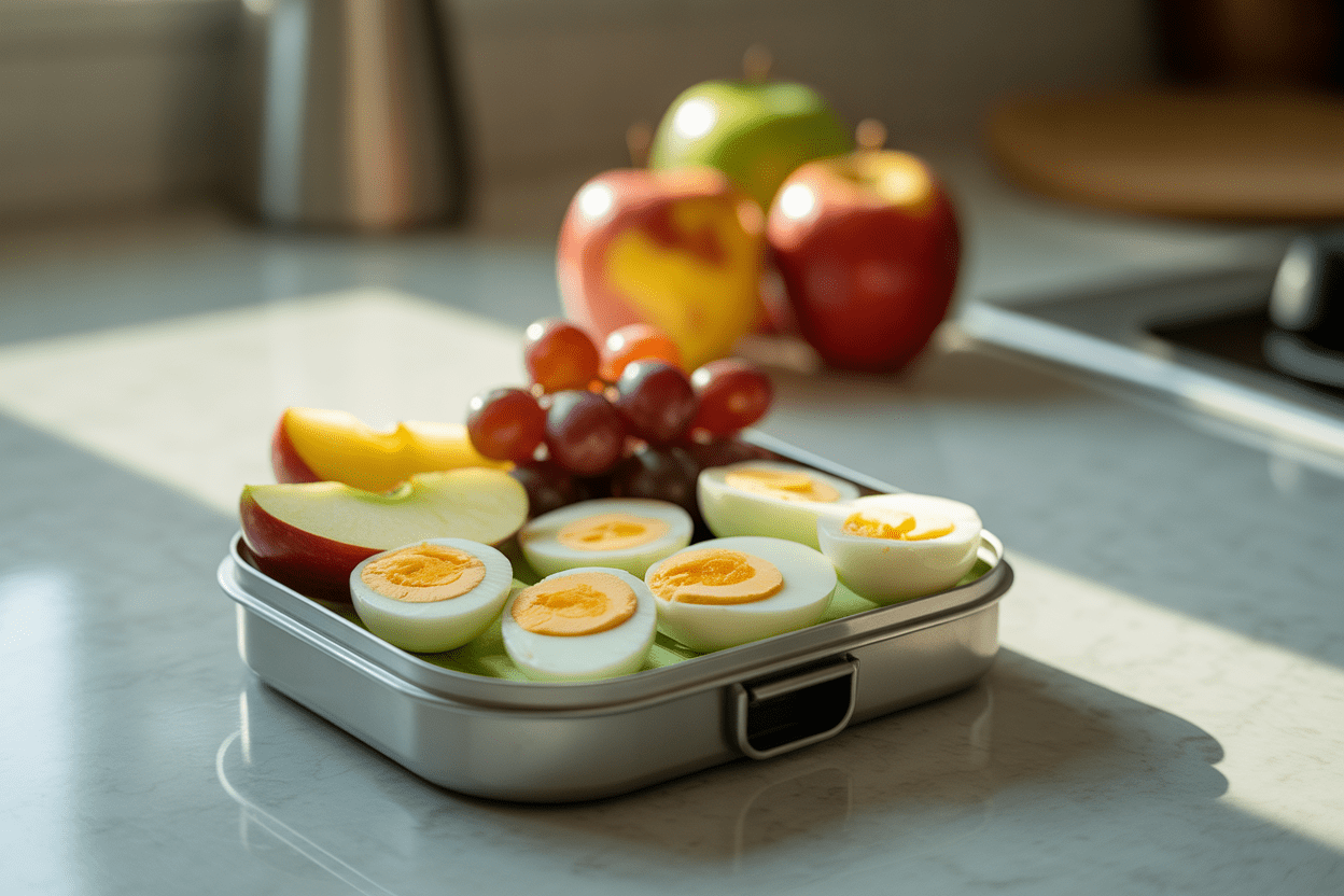 Why It Works: Eggs give you convenient protein, and fruit adds a little fiber and volume so the snack feels more complete. This kind of balanced meal helps because it gives you enough substance to bridge the gap to the next meal.