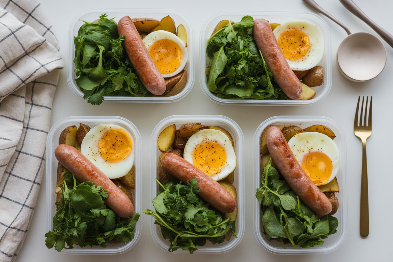 This is one of those easy healthy meal prep breakfasts that works because the structure is solid. Protein, fiber, and a whole-food carb source. Simple.