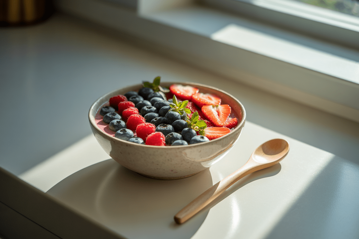 Why It Works: Greek yogurt and protein powder give the bowl much more staying power than a fruit-heavy smoothie alone. That's a strong fit for appetite control when mornings move fast. It's also one of those healthy food dishes that stays easy to repeat.