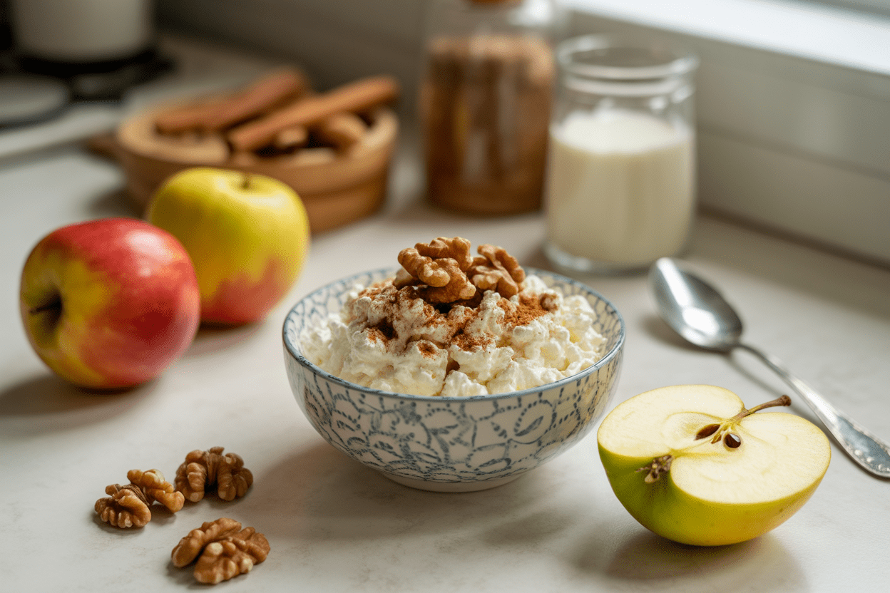 Why It Works: Cottage cheese gives you easy protein, and the apple plus walnuts help the bowl feel more satisfying than a plain dairy snack. It also works well if you want cottage cheese recipes that feel realistic on a weekday.