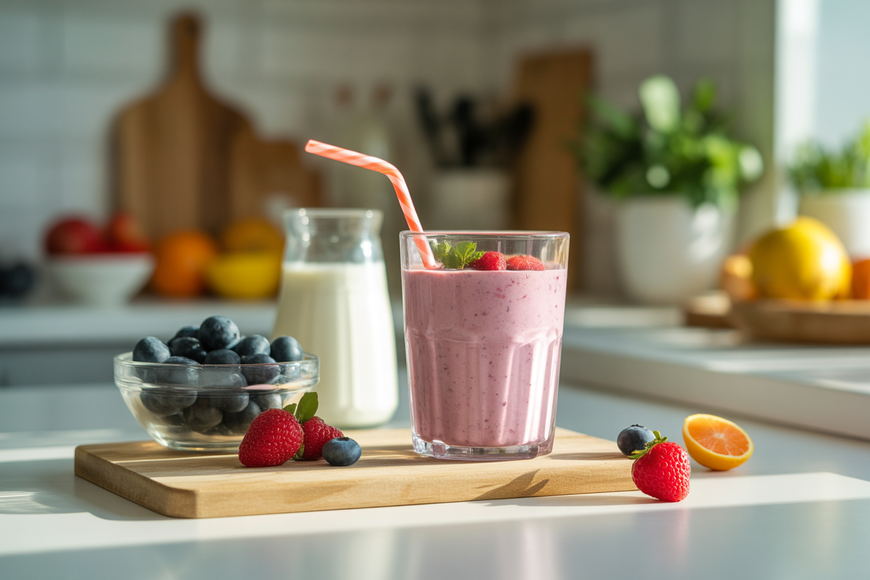 Blend everything until smooth, then drink it right away or refrigerate it for a short time if you need to leave quickly. Keep the texture thick enough that it still feels like a real breakfast.