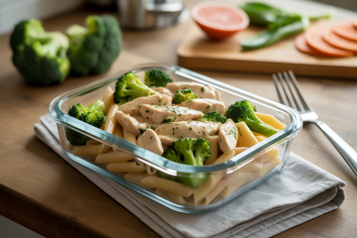 Why It Works: Chicken and protein pasta give this lunch a better protein payoff, while broccoli adds volume so it feels more filling. The meal reheats well because the sauce helps it stay from drying out. This is a great example of healthy food dishes that work for healthy meal prep for busy adults.