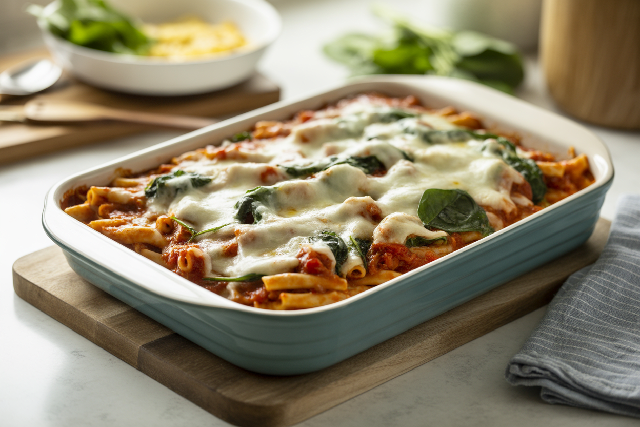 The turkey and cottage cheese or ricotta raise the protein enough to make this far more filling than standard baked pasta. Because it’s a mixed dish with protein, carbs, and some fat, it tends to hold up better in the fridge and gives you a more satisfying reheat meal than a plain bowl of pasta.