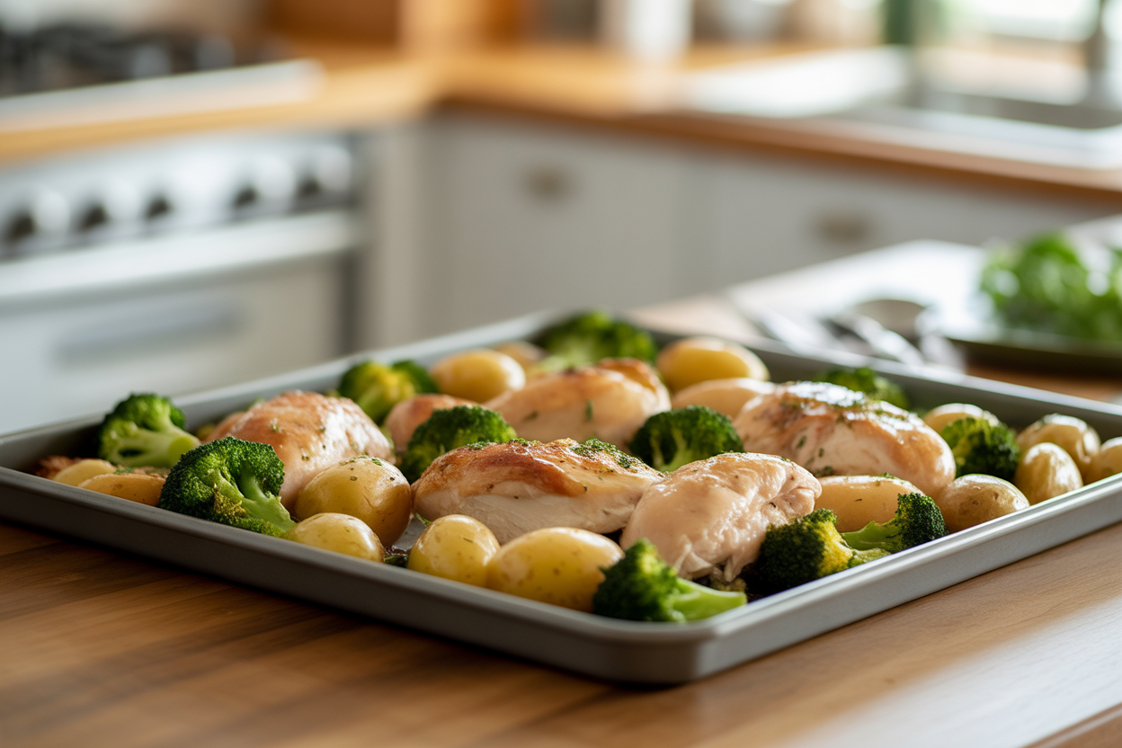| Sheet Pan Chicken, Potatoes, and Broccoli | 10 min | 25-30 min | 30-40g | Simple family-friendly dinner with balanced nutrition |