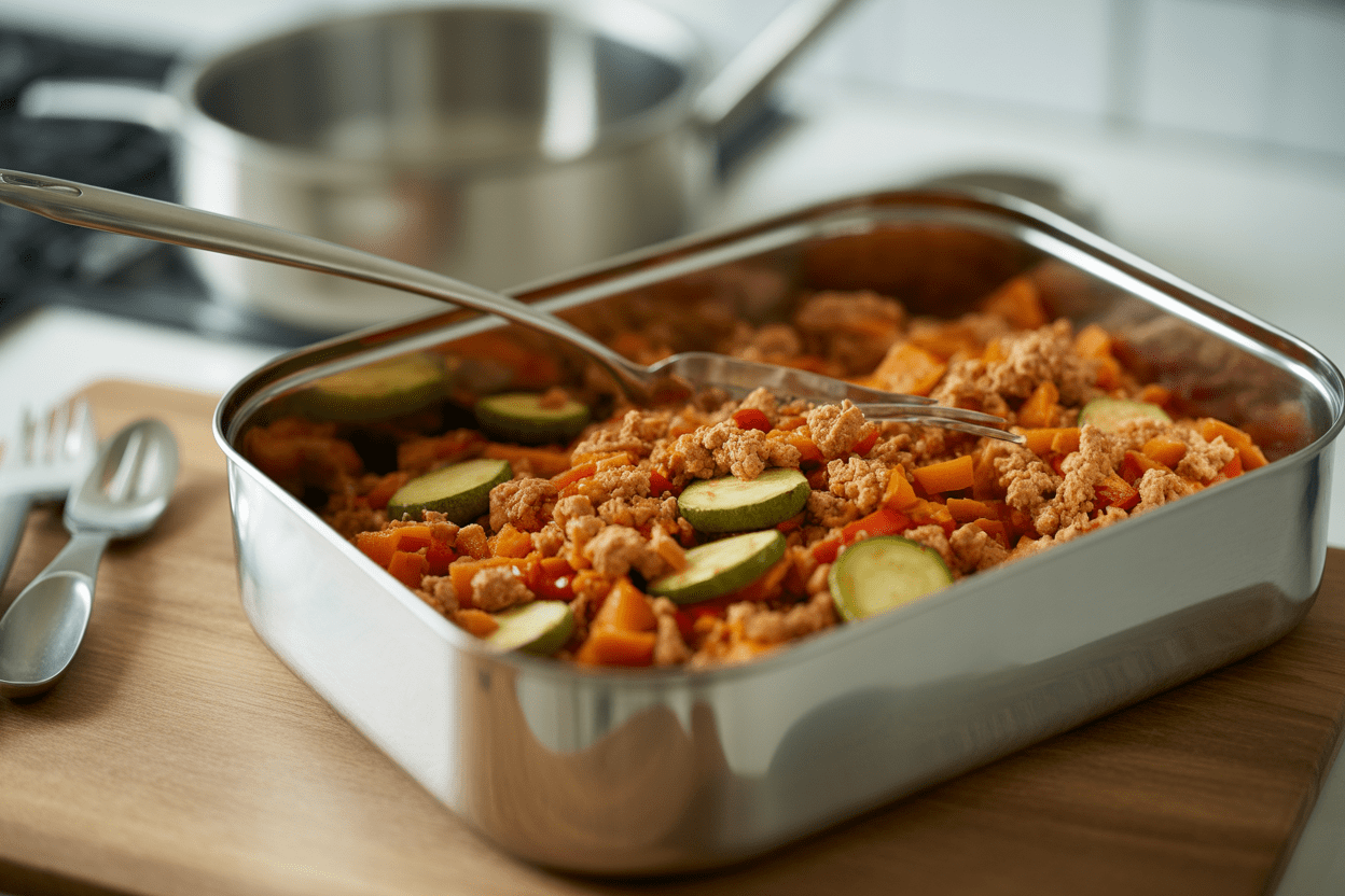 Why It Works: Turkey provides lean protein, while sweet potatoes give you slower-digesting carbs that support steadier energy and recovery. The vegetables add volume and fiber, which helps the meal satisfy you without needing to be huge. This is why low calorie high protein quick meals work best when they’re still built like real meals, not just protein plus sadness on a plate.