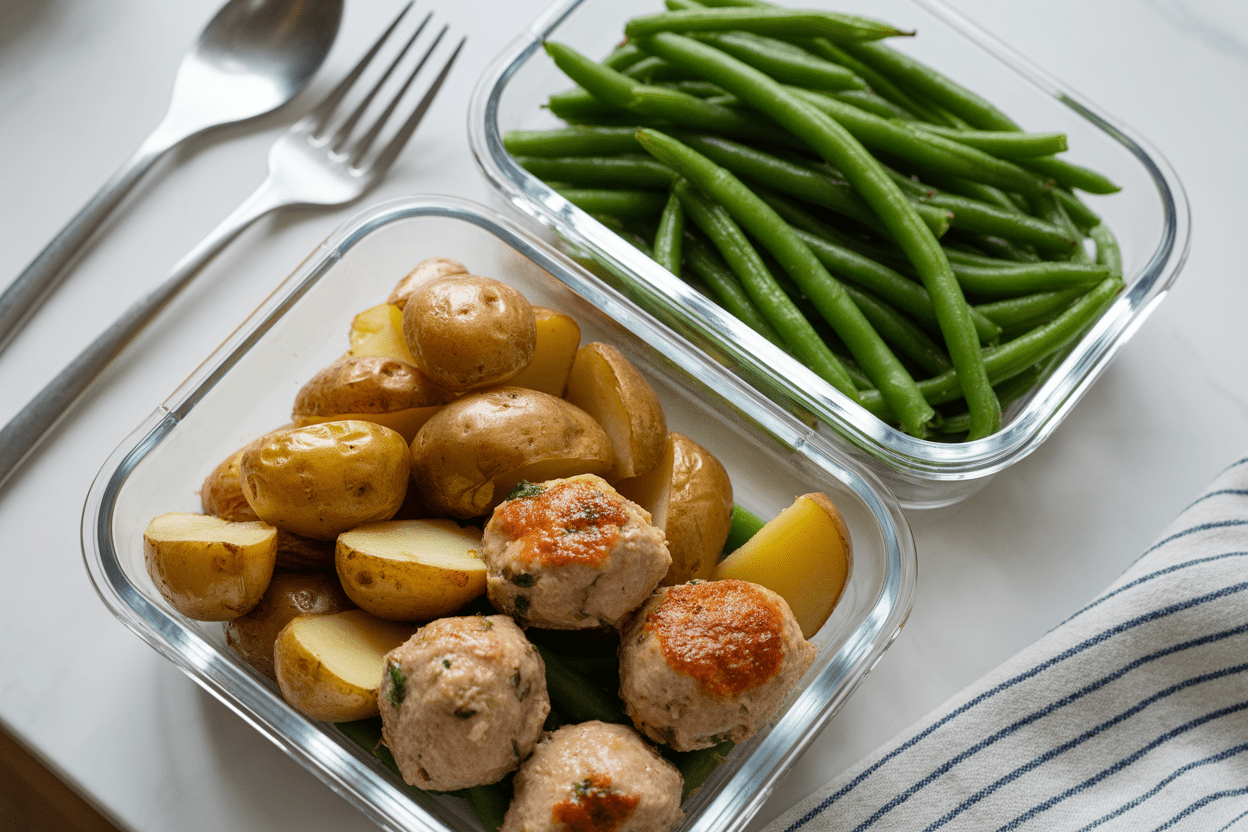 | Turkey Meatballs With Roasted Potatoes and Green Beans | 15 min | 25-30 min | 32-38g | Creates a balanced, satisfying dinner that still works as leftovers |